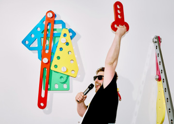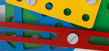 In addition to painting, Štědrý develops a sculptural practice that draws on the Czech Merkur building kit—a modernist emblem of constructive thinking and hands-on experimentation. His Merkur sculptures extend his pictorial vocabulary into three dimensions, staging encounters between order and spontaneity, mechanical precision and playful invention, material history and contemporary technology.